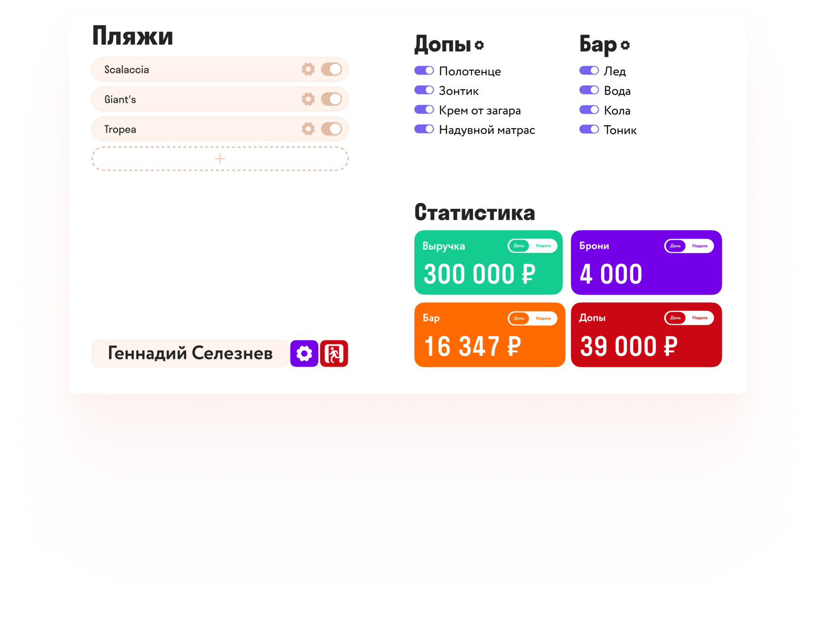 Также я сделал личный кабинет владельца пляжа. Стояла задача реализовать функции добавления пляжа, добавление на него лежаков, баров, доп. услуг