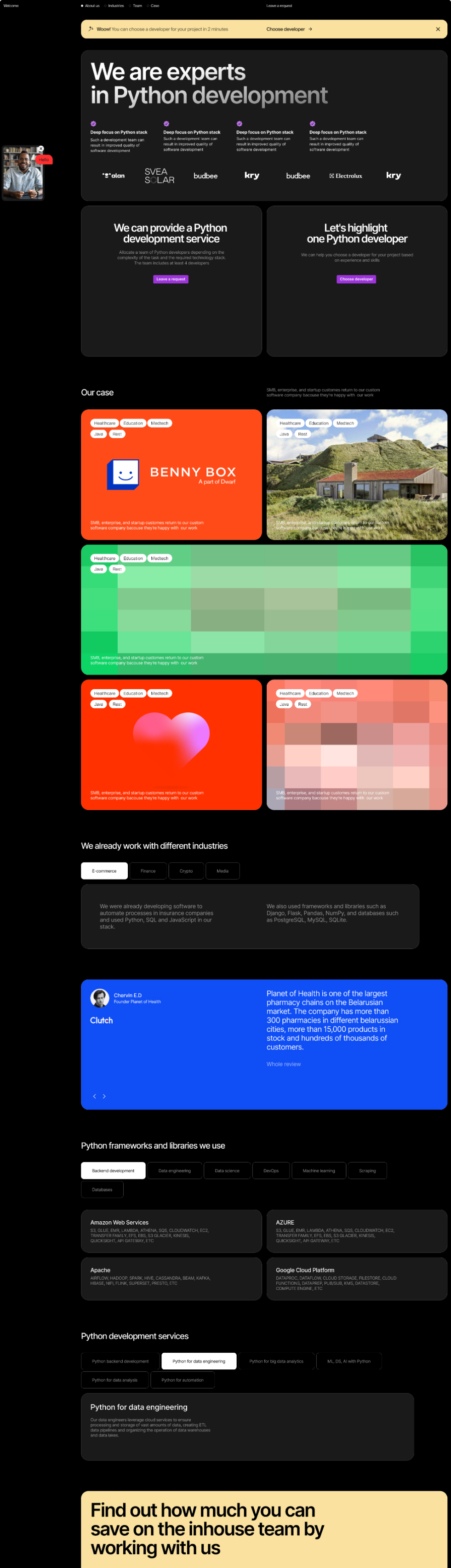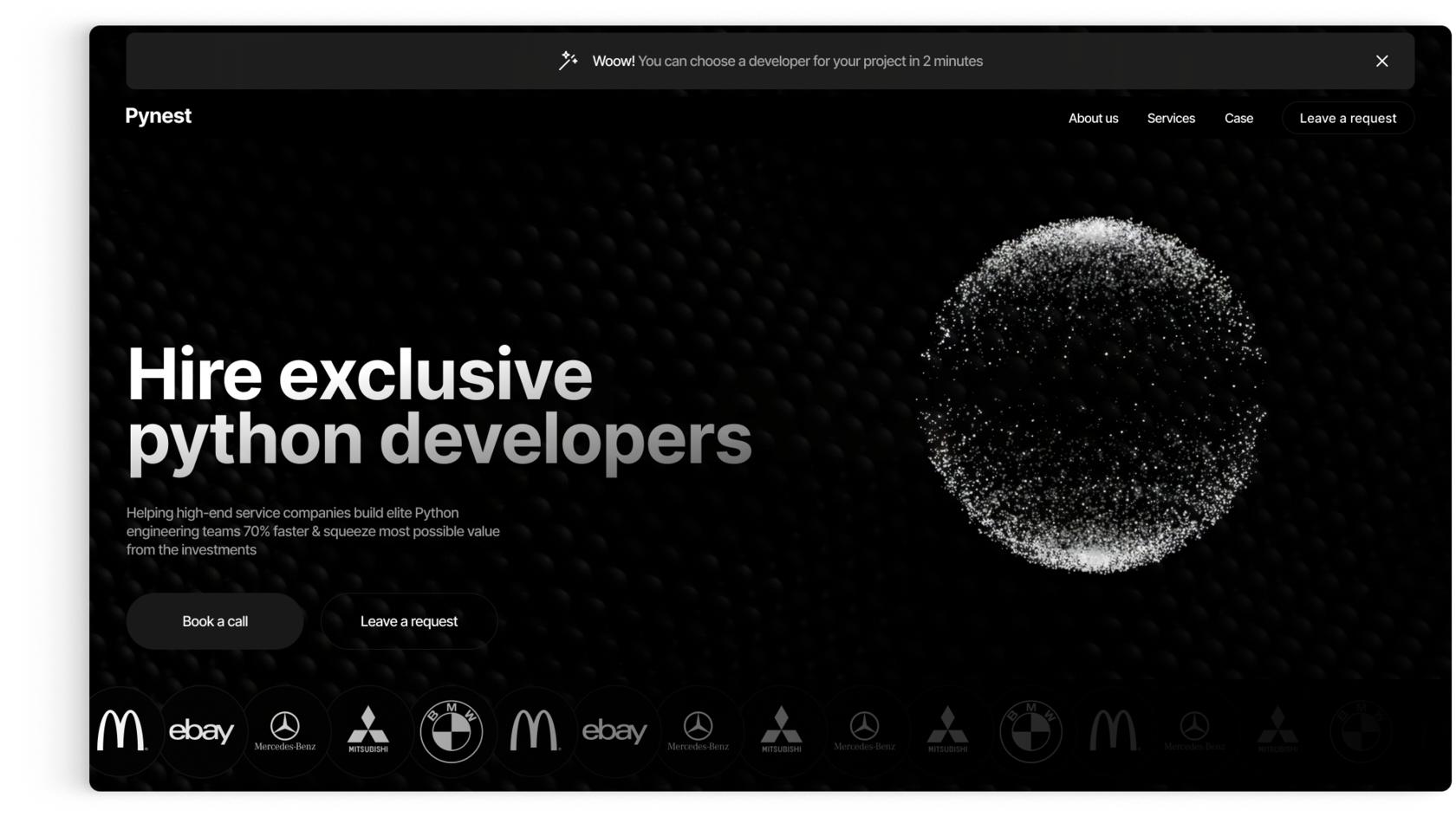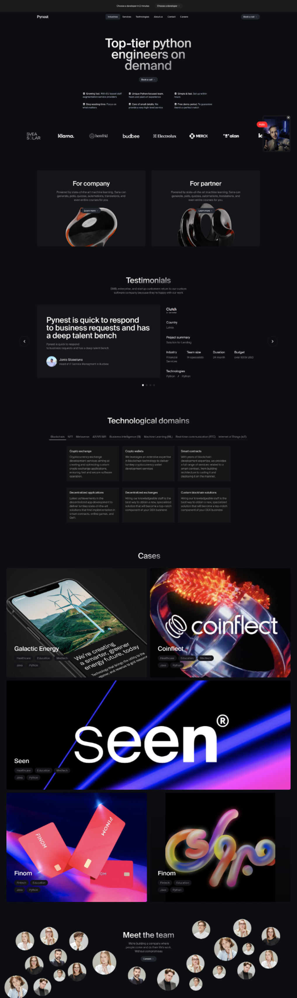 ㅤㅤPynest — аутстаф компания из Эстонии, занимающаяся предоставлением специалистов своей команды для решения задач клиента